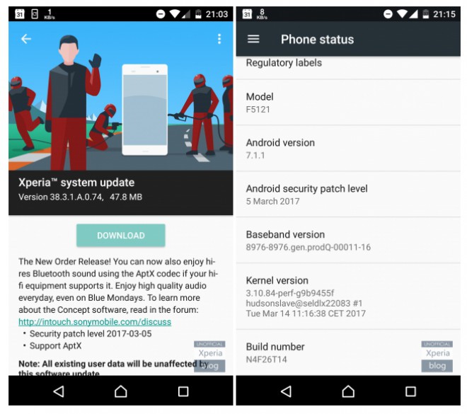 La build della nuova release è la 38.3.1.A.0.74 che porta solo un paio di novità tra cui il supporto ai codec AptX che permette di avere una maggiore qualità audio durante l’utilizzo di accessori Bluetooth compatibili.