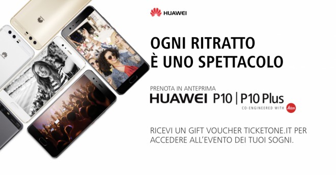 Huawei apre i pre-ordini di P10 e P10 Plus promuovendo un’operazione a premi che prevede la possibilità di ricevere un gift voucher TicketOne del valore di 100 euro.
