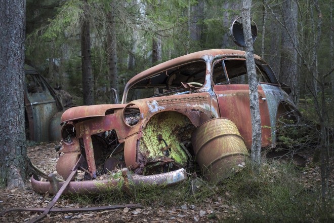 Il fotografo Alberto Ghizzi Panizza ha pubblicato una serie di foto che svelano il contrasto tra la foresta svedese e i veicoli arrugginiti presenti nel “Bilkyrkogården Kyrkö Mosse”, una sorta di cimitero delle automobili vicino a Ryd, Linköping, in Svezia. Il titolo della raccolta è "La Bellezza della Ruggine". Il luogo è stato scelto per via della sua particolarità: nel Bilkyrkogården Kyrkö Mosse i rottami degli anni '40 vengono letteralmente inghiottiti dal sottobosco paludoso e soccombono lentamente alla natura.