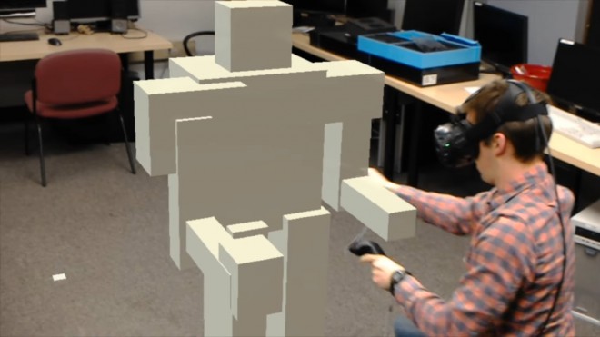 Il "proof-of-concept" è stato realizzato con un'applicazione molto rudimentale, che permette di disegnare dei parallelepipedi. Attraverso i servizi di networking del motore grafico Unity, HoloLens ha potuto "sincronizzarsi" dopo una rapida procedura all'ambiente virtuale di Vive e osservare in tempo reale la creazione dei cubi.