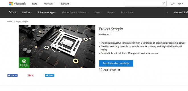 Project Scorpio fa capolino nel Microsoft Store (USA)