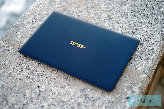 Il mio modello blu e oro, con tastiera retroilluminata che riprende il giallo del bordo e le altre finiture, è uno dei portatili più eleganti degli ultimi anni. Asus l'ha assemblato con una procedura di anodizzazione a due strati, ed il risultato impreziosisce tutta la macchina. Per qualità costruttiva, portabilità e praticità della dotazione di input (tastiera precisa: estesa fino ai bordi del telaio, con tasti distanti 2.1 mm e corsa di 0.8 mm per una esperienza di scrittura che invoglia a continuare - touchpad fluido: calibrato nel modo corretto per le gesture multitouch con lettore di impronte integrato, meno pregiato nel click) Zenbook 3 è un portatile riuscito. Semplicemente comodo. Il mio lato più pignolo mi obbliga a farvi notare una nota stonata nella tastiera: il suo clack clack plasticoso - ma fidatevi se vi scrivo che la resa non ne risente.