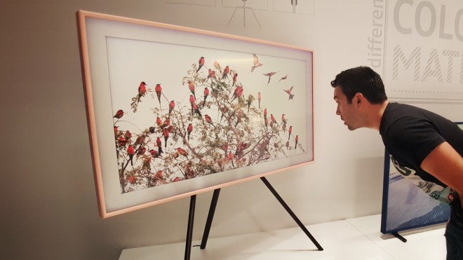 Quello che era stato presentato solo tre mesi fa come un concept, si è rivelato ieri come una soluzione più che credibile e pronta alla reale commercializzazione entro l'anno. Del tutto particolare l'esposizione organizzata all'interno del Carrousel du Louvre di Parigi, con un'immensa parete su cui c'erano distribuiti diversi TV The Frame e quadri tradizionali, impossibile distinguerli l'uno dall'altro a prima vista. Per capire quali fossero TV e quali normali tele sotto vetro abbiamo dovuto utilizzare inizialmente le nostre fotocamere, attraverso gli "occhi digitali" è infatti facile scorgere disturbi e flickering.